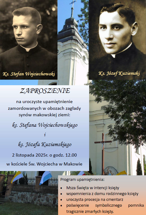 2 listopada 2025 r w Dzień Zaduszny miała miejsce w Makowie niecodzienna uroczystość. Mieszkańcy Makowa i Krężc postanowili upamiętnić swoich rodaków - kapłanów, którzy w czasie II wojny światowej zginęli w niemieckich obozach zagłady. Uroczystość rozpoczęła się w kościele parafialnym w Makowie uroczystą Mszą świętą sprawowaną za wszystkich wiernych zmarłych oraz za zamordowanych kałanów: ks Stefana Wojciechowskiego i ks Józefa Kuziemskiego. Następnie w żałobnej procesji poszliśmy na cmentarz, gdzie został poświęcony pomnik - kamień pamięci - przypominający prawdę o synach makowskiej ziemi. Na pomniku umieszczono napis z Ewangelii św Mateusza: Nie bójcie się tych, którzy zabijają ciało, lecz duszy zabić nie mogą. Przygotowania do uroczystości trwały ponad rok. Powstał zespół ludzi chętnych do pracy w różnych sektorach przygotowania. Wydano m.in. okolicznościową broszurę, zawierającą informacje i zdjęcia o życiu i śmierci bohaterskich kapłanów.